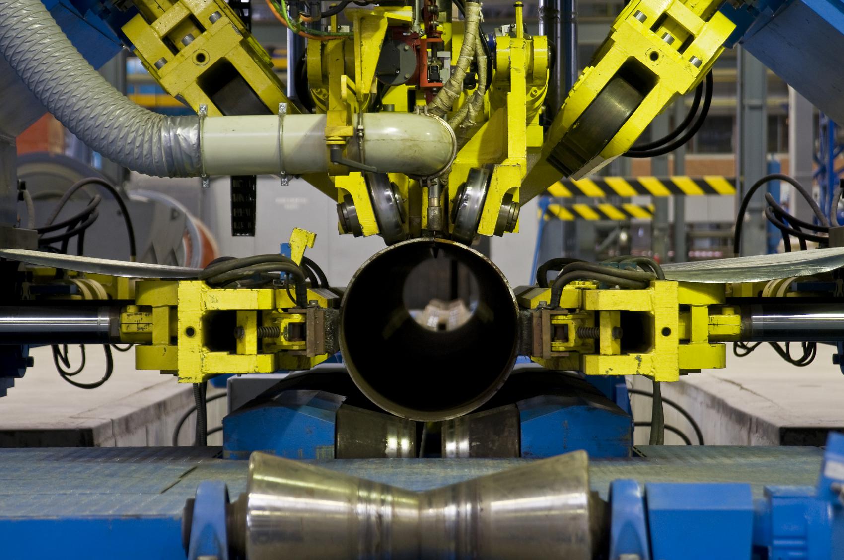 Punta kaynağı ile birleştirilen O şeklini almış levhalar, sonrasında sırası ile iç kaynak ve dış kaynak işlemlerine tabi tutulur.